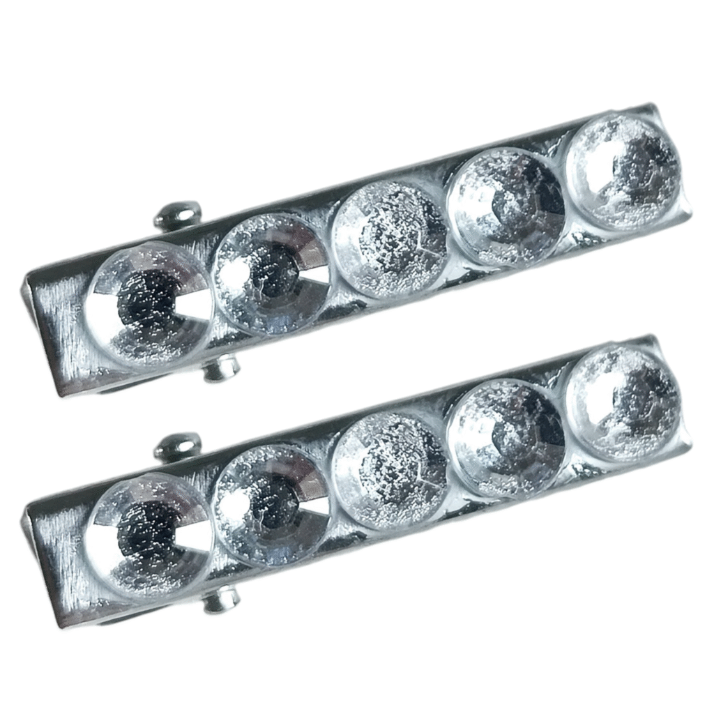 Subtelniejsze, ręcznie klejone spinki na bazie "krokodylek". Wyklejane cyrkoniami, świetnie uzupełniają codzienne fryzury. Zestaw zawiera 2 sztuki spinek zamocowanych na ozdobnej tekturce.