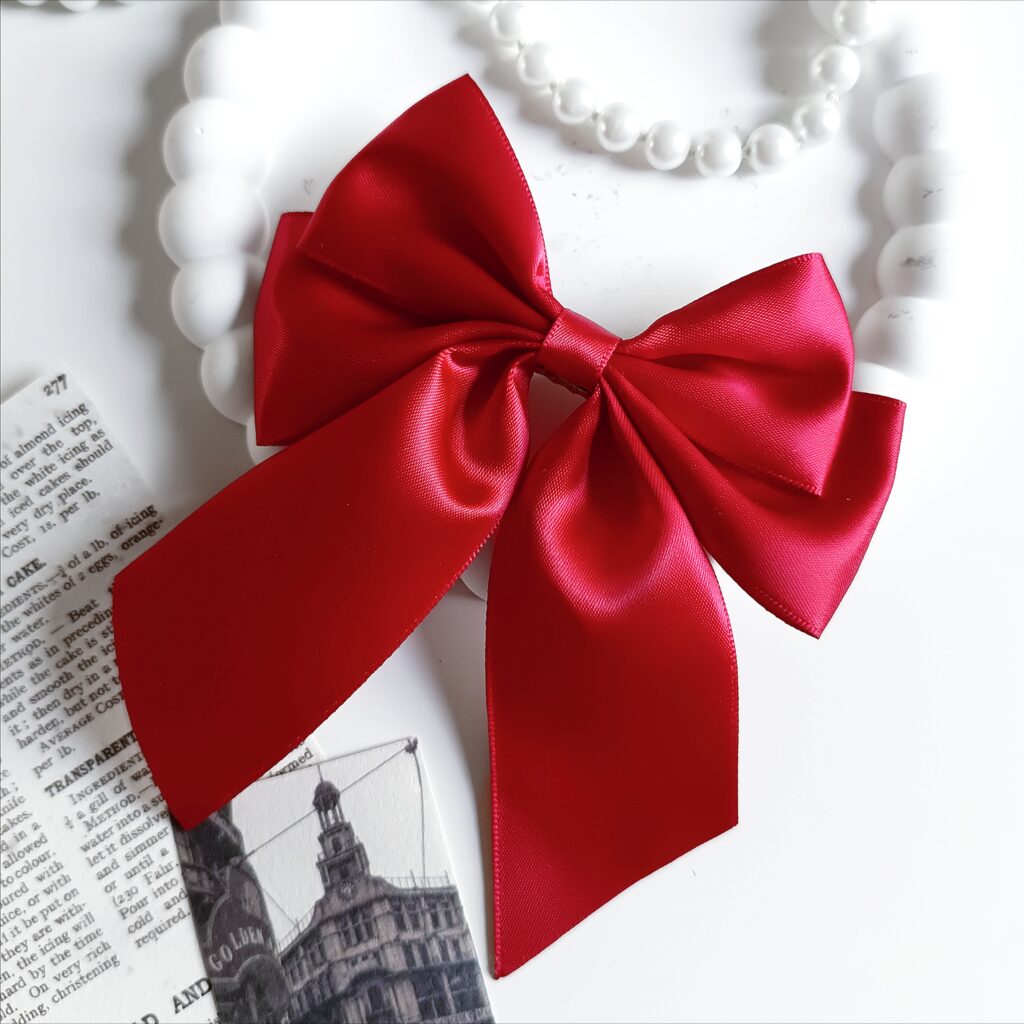 Duże kokardy z satyny, przyklejane bardzo mocnym klejem, który schnie aż 3 dni, co gwarantuje trwałość. Łatwe w zakładaniu i efektowne – idealne zarówno na co dzień, jak i na wyjątkowe okazje.